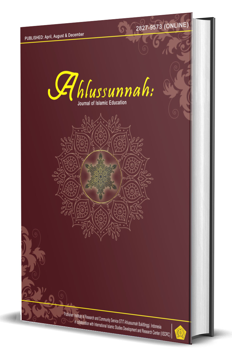 Ahlussunnah: Journal of Islamic Education is an international peer-reviewed journal published by the Institute of Research and Community Service STIT Ahlussunnah Bukittinggi, Indonesia in collaboration with the International Islamic Studies Development and Research Center (IISDRC) https://iisdrc.org/. This journal has been established in an online version since 2022: This journal publishes scientific research on Islamic educational institutions and Islamic education. These journal articles are published three times a year April, August, and December.