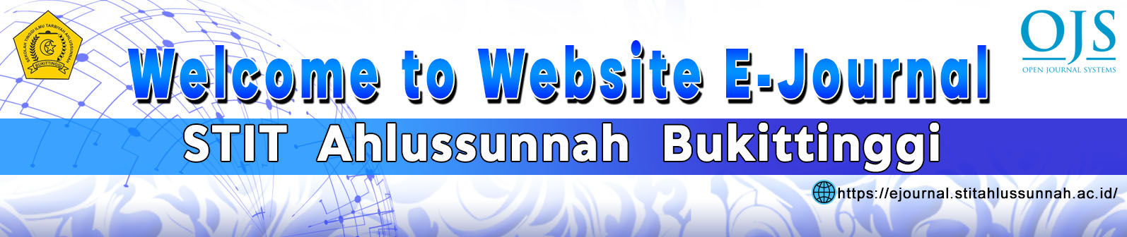 The STIT Ahlussunnah Bukittinggi E-Journal is the home for all academic and peer-reviewed journals within the STIT Ahlussunnah Bukittinggi environment. Our main task is to make academic journals a research center and produce integrative-interconnective research and studies published by faculties and study programs within STIT Ahlussunnah Bukittinggi and disseminated widely through the academic community. Officially opening in December 2023. Currently, the number of academic and peer-reviewed journals available at STIT Ahlussunnah Bukittinggi is 2 journals. This Journal House is run at the Institute for Research and Community Service, STIT Ahlussunnah Bukittinggi, Indonesia in collaboration with the International Islamic Studies Development and Research Center (IISDRC) https://iisdrc.org/. |
